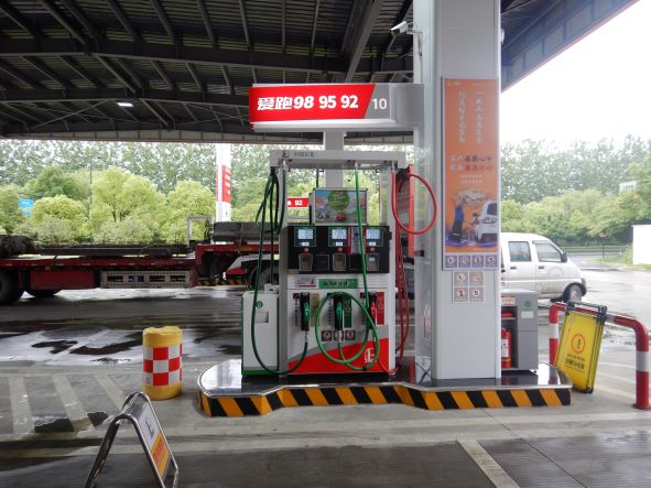 加油站設置汽油卸油和加油油氣回收系統。加油區設置加油罩棚,罩棚為輕鋼結構罩棚。罩棚下設置3臺三油品六槍和2臺雙油品四槍潛油泵式加油機(汽油加油槍帶油氣回收)以及1臺尿素液加注機;埋地油罐區設有4只埋地臥式SF雙層復合油罐(油罐均為車道罐,設置在承重框架內),其中2只50m³汽油罐(分別儲存92#汽油和95#汽油),1只33m³汽油罐(儲存98#汽油),1只33m³柴油罐(儲存0#柴油),折合油罐總容積為149.5m³(柴油罐容積折半計入),根據《汽車加油加氣加氫站技術標準》GB50156-2021的相關規定,該加油站為二級加油站。