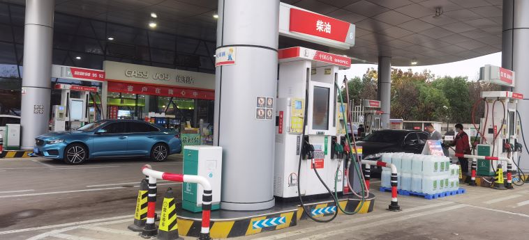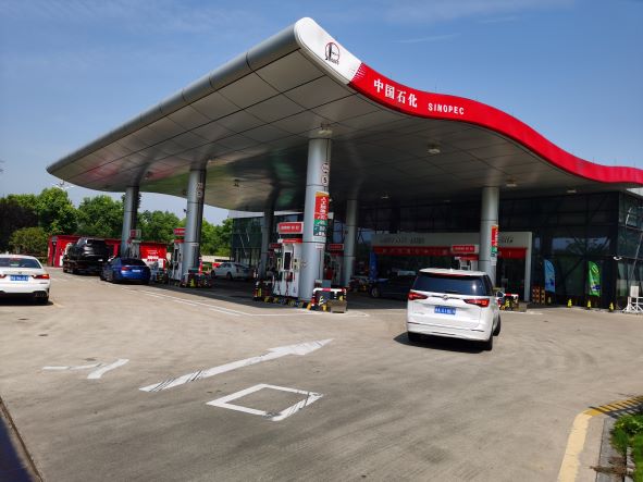 加油區(qū)設置加油罩棚,罩棚下設置5臺三油品六槍潛油式加油機(汽油)和1臺三油品六槍加油機(95#、92#汽油槍停用,只保留柴油);埋地罐區(qū)設有4只單層鋼制埋地油罐,其中30m3汽油罐1只(98#)、50m3汽油罐2只(92#、95#),30m3柴油罐1只(0#),折算后油罐總?cè)莘e145m3(柴油罐折半計入),依據(jù)《汽車加油加氣加氫站技術(shù)標準》GB50156-2021第3.0.9條辨識,該站屬于二級加油站。加油站已安裝汽油卸油和加油油氣回收系統(tǒng)。
